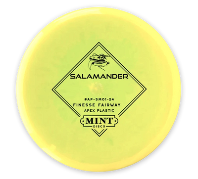 The Mint Discs Salamander in Apex plastic delivers this approachable, glidey fairway driver in Mint’s premium blend known for its excellent grip, durability, and consistent feel. Apex plastic has a smooth, slightly tacky finish that releases cleanly and holds its flight characteristics well over time. This version keeps the Salamander’s easy-to-throw nature intact while adding the longevity players expect from a premium plastic.