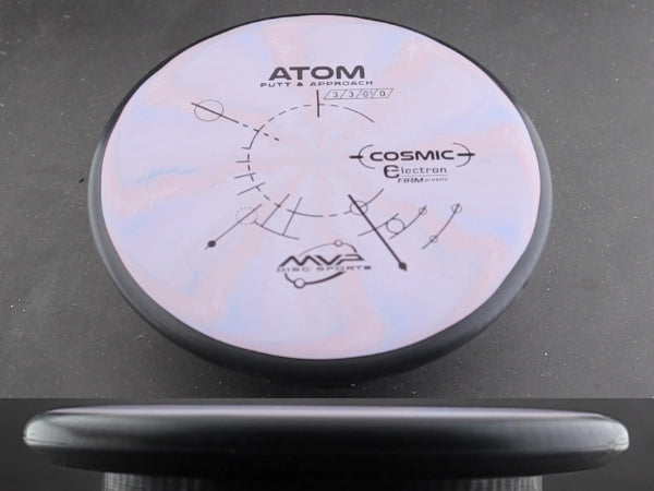 The Cosmic Electron Firm Atom pairs the Atom’s clean, point-and-shoot flight with MVP’s stiffest Electron blend. Cosmic Electron Firm offers a rigid, confidence-inspiring feel with vibrant swirled patterns unique to each disc. This version provides a crisp, consistent release that’s perfect for players who like a firmer putter for both putting and straight, controlled approaches.
