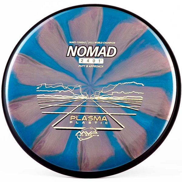 The Plasma Nomad is a unique disc that flies like a less stable Entropy with a straighter finish as it loses speed in the air. It is great for windy putts and has the same dimensions and micro bead as the popular electron version. It has a 2-speed rating, but can fly just as far as most midrange discs with the right technique. This disc has superb glide, a comfortable rim depth for comfort in the hand, and can reach distances close to 300ft with the right arm speed. The flight numbers hold up after heavy use due to the stability of the Plasma plastic