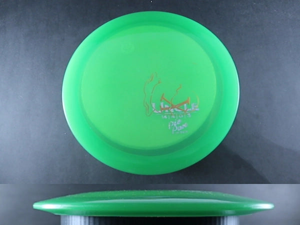 When you need your approach disc to hold its line and fade hard at the end, the Grunt delivers every time. It’s a trusted overstable workhorse that thrives in headwinds, skips predictably, and lands where you aim — baked to perfection in Pie Pan’s durable Baker’s Blend plastic.
