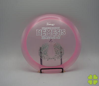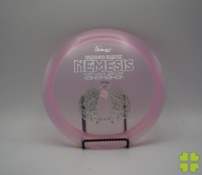The Nemesis is a 10 speed driver with a maximum amount of glide that flies more like a distance driver. This disc has a slight high speed turn with a strong finish at the end. The Nemesis will fill the gap between the fairway and distance drivers. Beginning players will love the ease of throwing it and the effortless distance they will get from it. Professionals will love the long turnover shots or epic rollers with pin point accuracy when they rip into it.