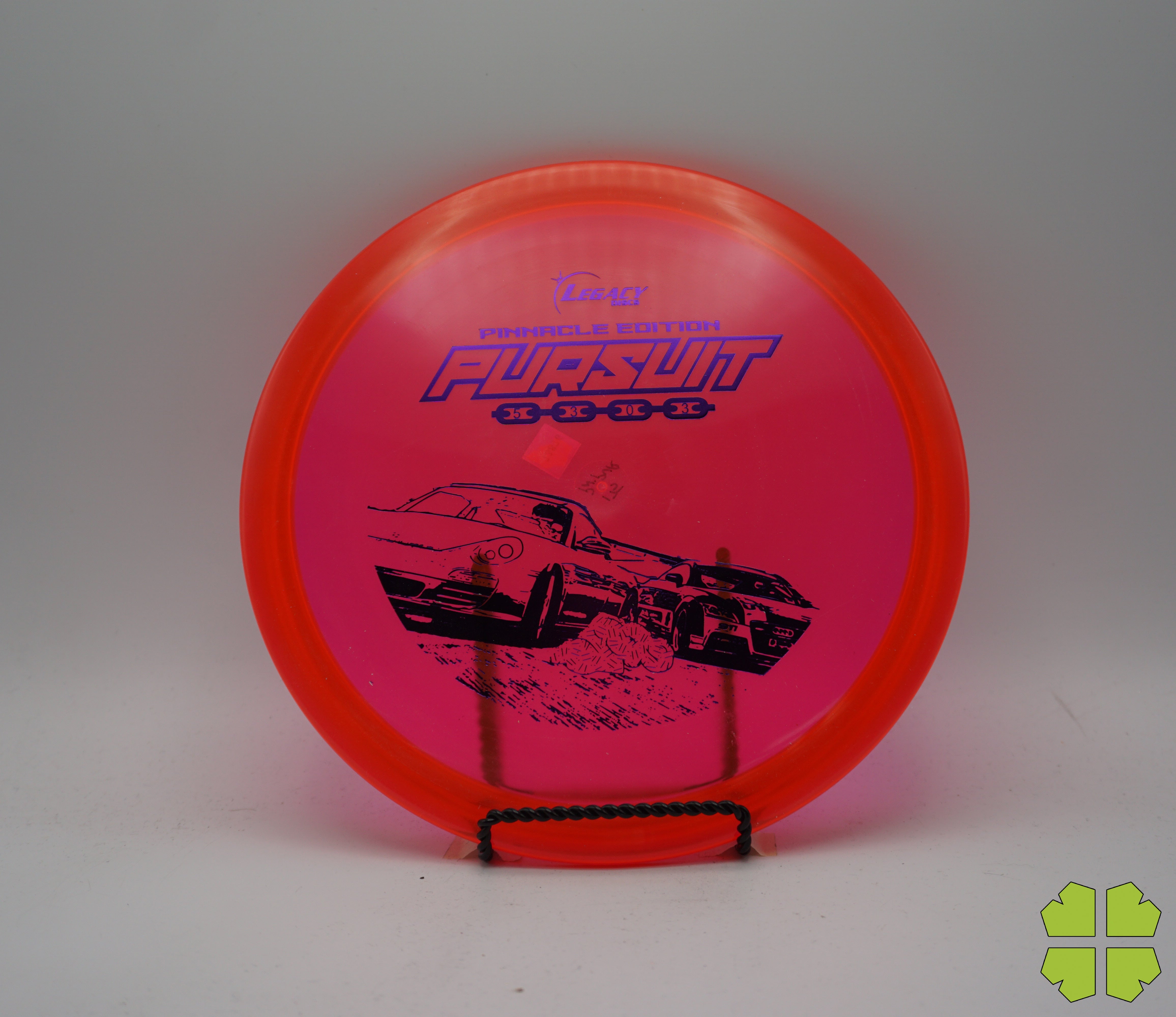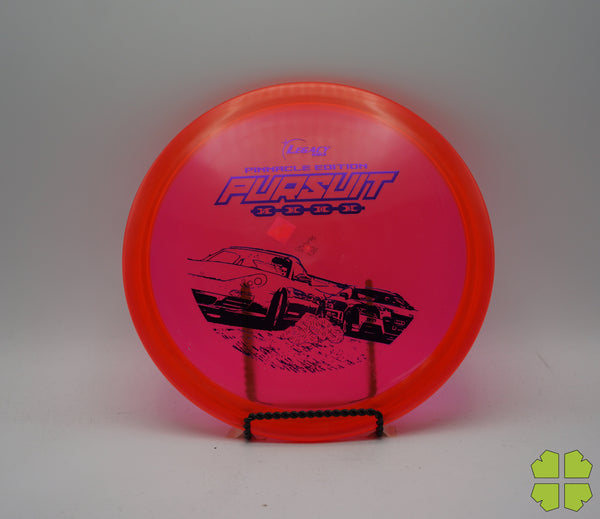 The Pursuit is an over-stable mid-range that will accept the challenge of a stiff head wind and fight through it with confidence. This disc delivers pin point accuracy and dependability. The Pursuit was designed for players to power their mid range up the fairway in any condition and still maintain a controlled distance. We designed the Pursuit to have a flat top for a comfortable grip. With this disc, both back hand and forehand throwers will be able to take advantage of its similarity to a driver power grip but with that special mid range distance. This utility disc is all you need to bring your mid range game to the next level. The Pursuit by Legacy Discs has been designed specifically for you.
