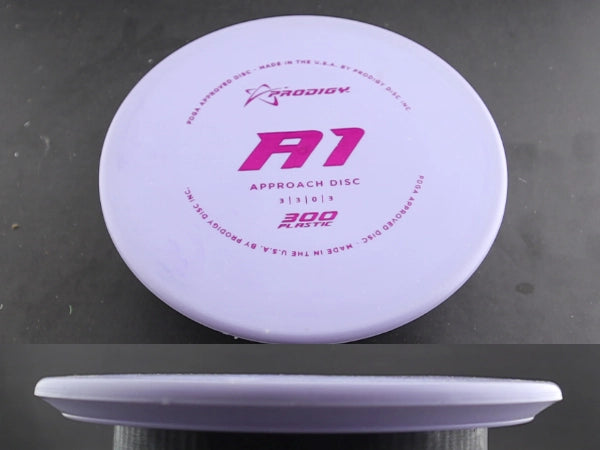 The Prodigy A1 in 300 plastic is an overstable approach disc made for players who want confident, repeatable control at short range. The A1’s flat profile, low glide, and strong fade make it a go-to option for forehand upshots, wind-fighting approaches, and touch shots that must finish on command. In 300 plastic, the A1 gains a tackier, baseline feel that offers outstanding grip and touch—perfect for players who want a softer, more workable release around the green.