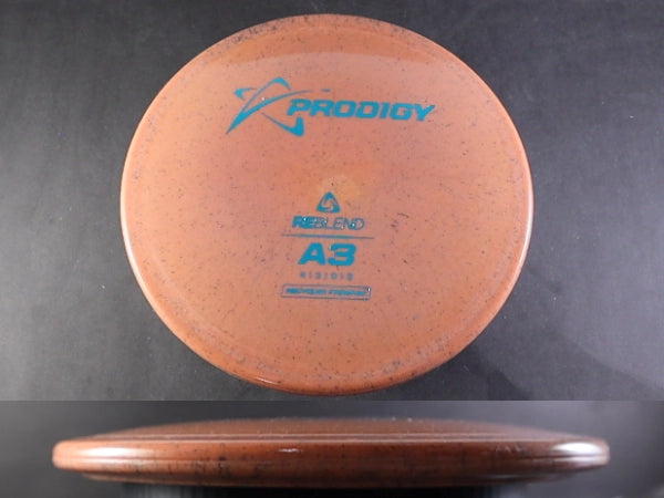 The Prodigy A3 in ReBlend plastic is a reliably overstable approach disc designed for players who want clean control with an eco-friendly twist. The A3 sits comfortably between the A2 and A4 in stability—offering a strong, workable fade that holds up to power without being overly dumpy. In ReBlend, Prodigy’s recycled-content plastic, the mold gains slightly softer grip, excellent touch, and a more environmentally conscious construction while maintaining the dependable stability players expect from an A3.