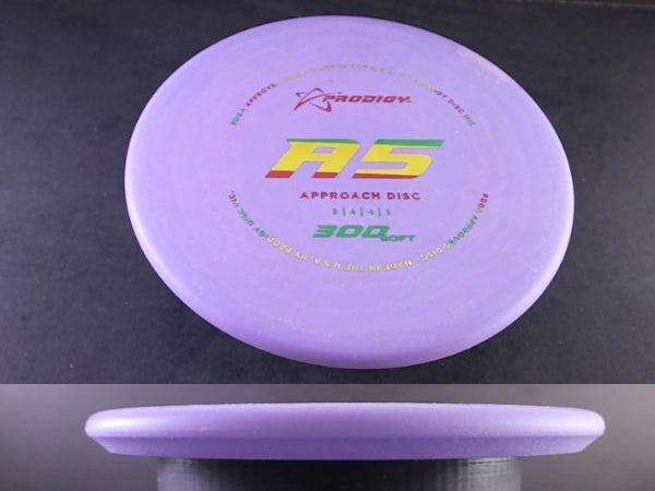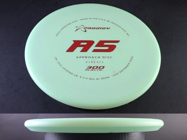 The Prodigy A5 in 300 plastic is a smooth-flying, neutral-to-stable approach disc built for clean touch, easy shaping, and straight, dependable control. As one of the most versatile molds in Prodigy’s approach lineup, the A5 offers gentle turn with a mild, workable fade—perfect for players who want a disc that can hold almost any angle they put it on. In 300 plastic, the A5 gains excellent grip and a slightly softer baseline feel, giving players outstanding touch for both backhand and forehand approaches.