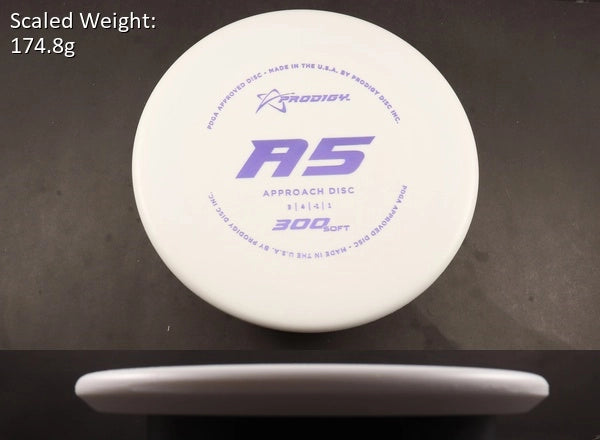 The Prodigy A5 is a slightly overstable approach disc that will work in to be a straight flyer. It has a nice, smooth feel with a shallow profile a...