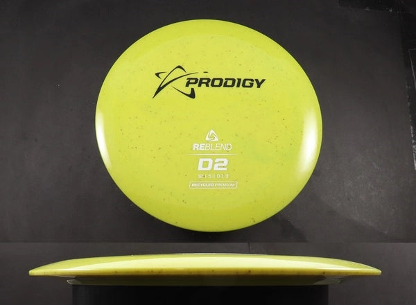 The Prodigy D2 in ReBlend plastic gives this popular high-speed distance driver a second life through Prodigy’s eco-friendly recycled blend. ReBlend discs are made by reprocessing premium plastics, resulting in a grippy, slightly softer feel with flight characteristics that closely mirror their original counterparts. This run of the D2 keeps its familiar “fast but workable” stability while offering a more sustainable option for players who want reliable distance with a lighter environmental footprint.