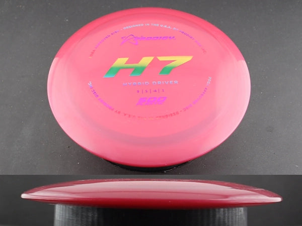 The Prodigy H7 in 500 plastic gives this extremely understable hybrid driver a premium, long-lasting feel with a crisp, consistent release. 500 plastic is one of Prodigy’s stiffest and most durable blends, offering a clean hand feel and dependable grip without excess flex. This run keeps the H7’s effortless turn and massive glide while adding just enough stability to keep the disc predictable during finesse-driven shots.
