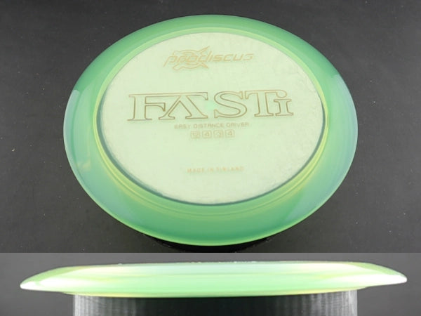 The Prodiscus FASTi is a controllable, high-speed distance driver with surprising versatility. With a -3 turn and 4 fade, this disc is designed for sweeping S-curves, hyzer flips, and touchy flex shots. Despite its speed rating of 12, the FASTi is very approachable—even for beginners looking to explore max distance.