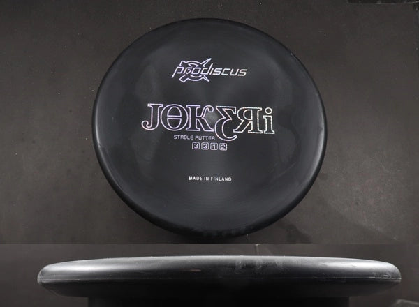 The Jokeri is a popular, highly rated putt & approach disc made by the Finnish disc manufacturer Prodiscus. This is a tall, bulky disc with a flat, almost concave tip. The Jokeri is a very popular disc for short putts as well as long drives. The Prodiscus Jokeri is a reliable, overstable disc that performs very well in windy conditions. This disc is available in both basic and premium plastic.