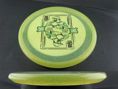 The Jokeri is a popular, highly rated putt & approach disc made by the Finnish disc manufacturer Prodiscus. This is a tall, bulky disc with a flat, almost concave tip. The Jokeri is a very popular disc for short putts as well as long drives. The Prodiscus Jokeri is a reliable, overstable disc that performs very well in windy conditions. This disc is available in both basic and premium plastic.