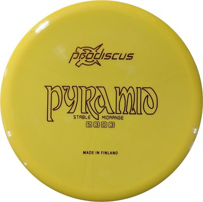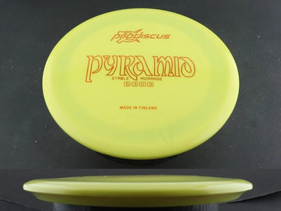The Pyramid by Prodiscus is a pro-level stable-to-overstable midrange with a mostly flat profile that is ideal for both forehand and backhand short-range throws. It has a steady finishing fade every time, even when used by experienced power throwers.