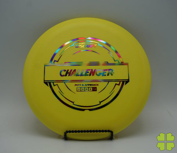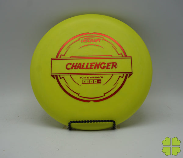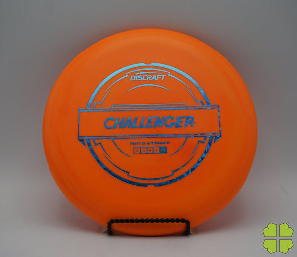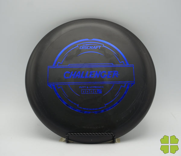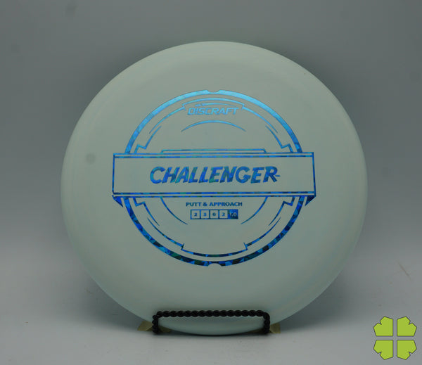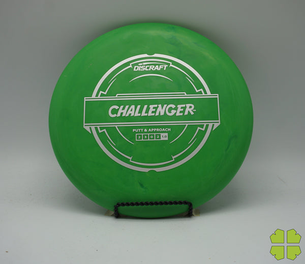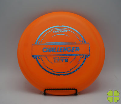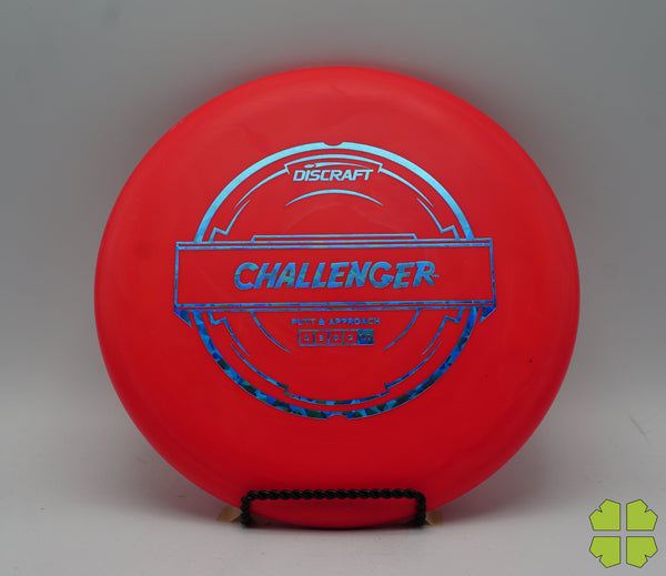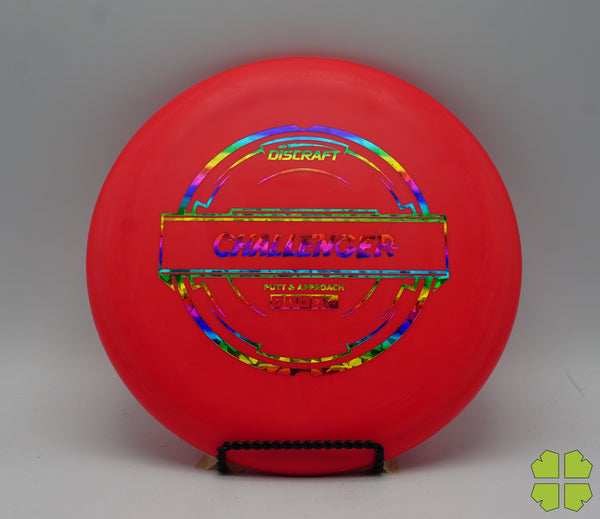 The Challenger is a tall overstable putter with a deep rim and a tiny bead. It has a Discraft stability rating of 1, and as an overstable putter is able to handle long approach shots without turning over. This putter is popular for advanced disc golfers.