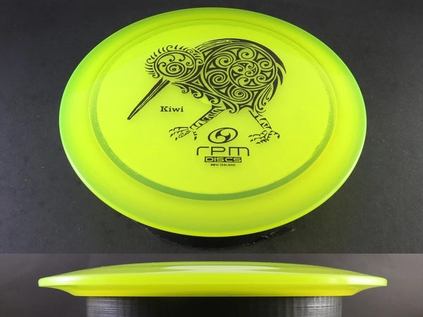 The RPM Discs Kiwi in Cosmic plastic is an overstable control driver built for power, accuracy, and wind-fighting dependability. Named after New Zealand’s iconic flightless bird, the Kiwi is anything but grounded — it soars with predictable stability and a strong, dependable fade. The Cosmic blend offers a premium, pearly finish with excellent grip and long-lasting durability, giving players the confidence to throw hard without worrying about turn.