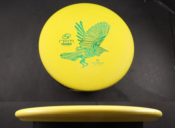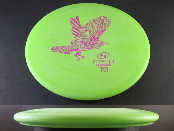 The RPM Discs Tui in Magma plastic is an understable, beadless putter designed for smooth, glidey flights and pinpoint accuracy. Named after New Zealand’s native songbird, the Tui is graceful in the air — perfect for players who want a disc that holds straight lines and turns gently with control. The Magma blend offers a soft, tacky texture with excellent grip and a touch of flexibility, providing confident control in any weather and a comfortable feel in the hand.