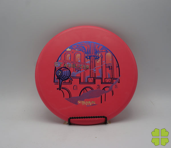 The Stabilizer is an overstable putter from Streamline Discs, making its debut in Streamline Neutron and Cosmic Neutron plastic. This is the second putter from Streamline Discs and is the overstable compliment to the Streamline Pilot. The Stabilizer has a similar hand feel and depth as the Neutron Pilot, but with a slightly raised shoulder and more pointed nose that produces a flatter and more stable putter. The Stabilizers defining flight characteristic is straight flights with minimal turn, into a strong finishing fade for point and shoot accuracy on the approach.