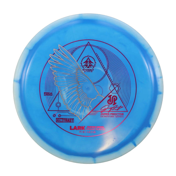 The Stokely Discs Lark in Signature Contrast Thermo plastic is a smooth, straight-flying midrange that excels in control, glide, and versatility. Like its melodic namesake, the lark, this disc is made for graceful, accurate flights that hold any line you put it on. The Signature Contrast Thermo blend provides tour-grade durability, outstanding grip, and bold visual contrast — giving players the perfect mix of performance, style, and confidence on the course.