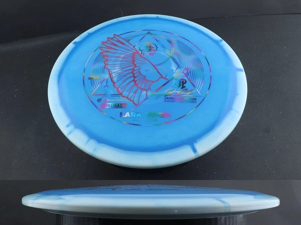 The Stokely Discs Lark in Signature Contrast Thermo plastic is a smooth, straight-flying midrange that excels in control, glide, and versatility. Like its melodic namesake, the lark, this disc is made for graceful, accurate flights that hold any line you put it on. The Signature Contrast Thermo blend provides tour-grade durability, outstanding grip, and bold visual contrast — giving players the perfect mix of performance, style, and confidence on the course.