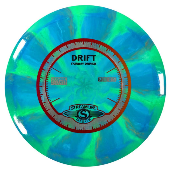 The Streamline Drift in Cosmic Neutron SL plastic is a smooth, understable fairway driver made for effortless glide, precise control, and stunning visual appeal. As one of Streamline’s most versatile control drivers, the Drift excels at shaping lines through wooded fairways, executing hyzer flips, and gliding straight down the fairway with pinpoint accuracy. The Cosmic Neutron SL blend combines the vibrant swirls of Cosmic Neutron with the slightly lighter-weight construction of the SL series, giving players enhanced glide, excellent grip, and long-lasting durability.