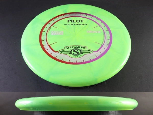 The Streamline Pilot in Cosmic Neutron SL plastic is a dependable, straight-stable putter and approach disc designed for clean releases, confident control, and a touch more glide thanks to its lighter-weight SL construction. The Pilot’s balanced stability makes it equally capable on the green or off the tee, while the Cosmic Neutron SL blend adds Streamline’s signature premium grip, long-lasting durability, and stunning multi-color swirl patterns.