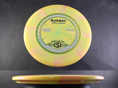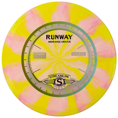 The Streamline Runway in Cosmic Neutron SL plastic is a reliably overstable midrange built for power, precision, and confident control in any condition. Known for its torque resistance and consistent fade, the Runway is a workhorse disc that excels in headwinds, approach shots, and full-power midrange drives. The Cosmic Neutron SL blend combines premium durability and enhanced grip with lighter-weight construction and stunning multi-color swirls — giving the Runway extra glide and standout visual appeal.