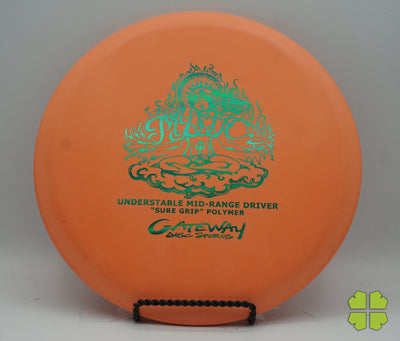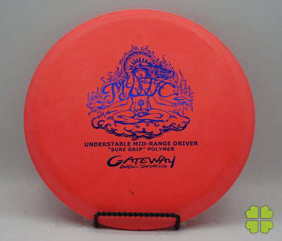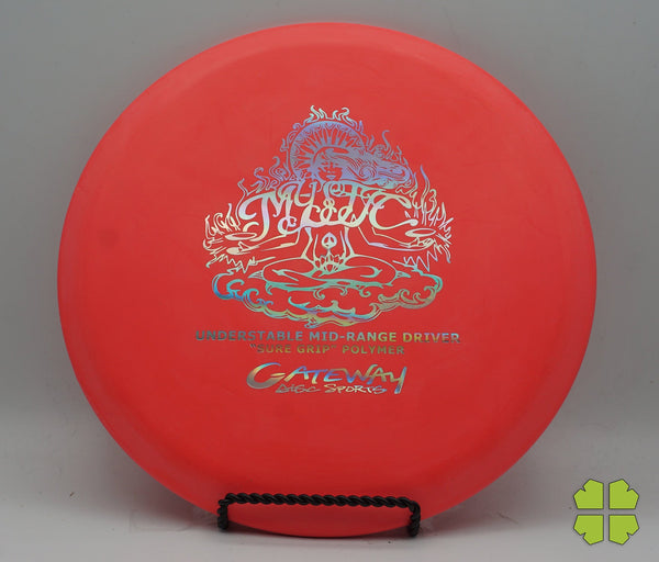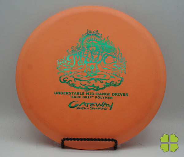 The Mystic is one of the newer discs in the Gateway midrange line. This is an understable midrange that can hold any line, and is easy to throw. It is another great Gateway midrange for beginners. The Mystic is available in Sure Grip and Evolution plastics. It can be purchased in light weights, and has a very similar feel to other Gateway midranges (same rim width & depth) to help provide consistent disc golfing results.