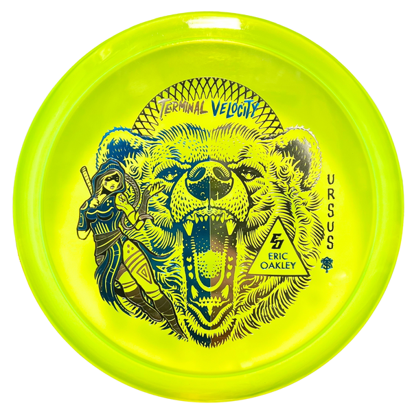 The Terminal Velocity Ursus in Signature Glass plastic is a stable-to-overstable midrange designed for controlled power shots, confident approaches, and dependable fade. Named after the Latin word for “bear,” the Ursus lives up to its name with a strong, steady flight that resists turn and finishes with authority.
