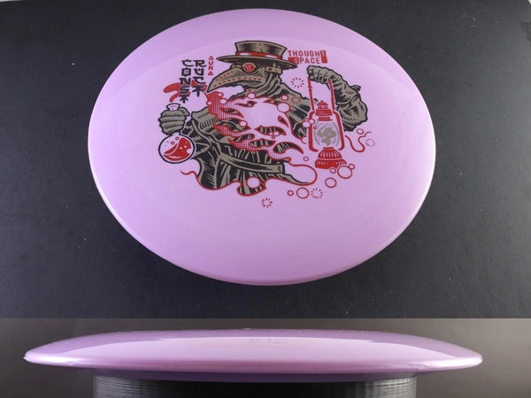 The Thought Space Athletics Construct in Aura plastic blends this versatile control driver with TSA’s premium, durable blend known for its grippy feel and stunning multi-color swirls. Aura plastic offers a comfortably firm hand feel with excellent traction, giving players a confident release and reliable flight consistency. This version of the Construct highlights the mold’s balanced stability—making it a go-to driver for shaping lines with both power and finesse.
