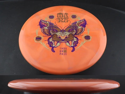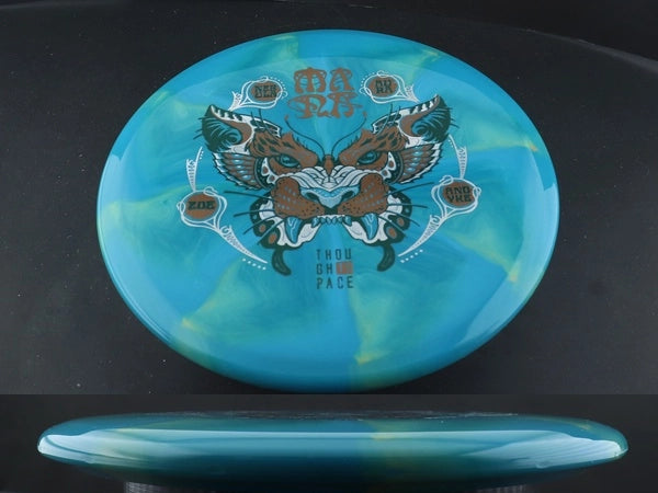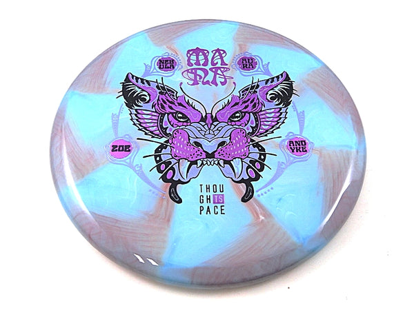 The Thought Space Athletics Mana in Signature Nebula Aura plastic pairs this effortless, understable midrange with one of TSA’s most visually striking and grippy premium blends. Nebula Aura offers the same durable, semi-flexible feel as standard Aura but with stunning swirled color patterns unique to each disc. This blend provides excellent hand traction, clean releases, and the longevity needed for a shaping-focused midrange like the Mana.