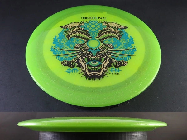 The Thought Space Athletics Omen in Ethos plastic brings this powerfully overstable fairway driver into a durable, translucent blend built for consistent performance and eye-catching clarity. Ethos plastic offers a firmer, more stable feel than Ethereal, giving the Omen added torque resistance and longevity—perfect for players who lean on it as a primary wind-fighting and utility driver.