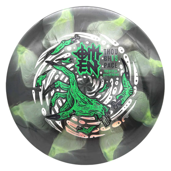 The Thought Space Athletics Omen in Nebula Ethereal plastic delivers this powerhouse overstable fairway driver in one of TSA’s most visually striking premium blends. Nebula Ethereal combines the silky-smooth feel and durability of Ethereal plastic with vibrant, multi-swirl patterns unique to every disc. This version of the Omen offers exceptional grip and a touch of flex while maintaining the torque resistance and wind-fighting stability the mold is known for.