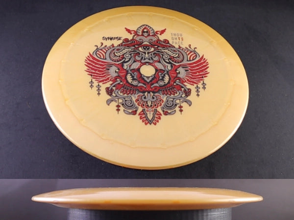 In Ethereal, the Synapse delivers a controlled high-speed turn followed by a strong, dependable fade. It holds up to torque extremely well, making it ideal for powerful backhand and forehand drives. Expect a penetrating flight with long forward push, a touch of workable turn for shaping S-curves, and a finish that stays predictable even in moderate wind.