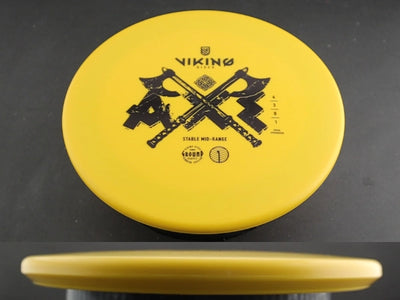 The Viking Axe is a midrange disc, but with a slow glidey flight like a putter. The Axe has a slight dome and a stable flight with a fading finish. This is an excellent precision disc when you need an accurate placement.