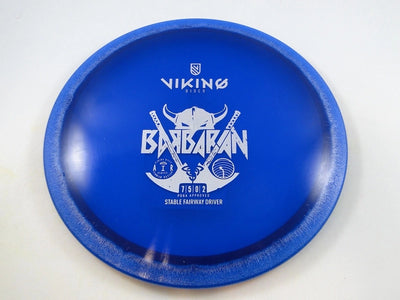 The Barbarian fills the Viking Discs's slot of stable fairway driver. The Barbarian flies straight and true, before reliably fading at the end of the flight. Use this trustworthy disc in wooded and open courses alike!