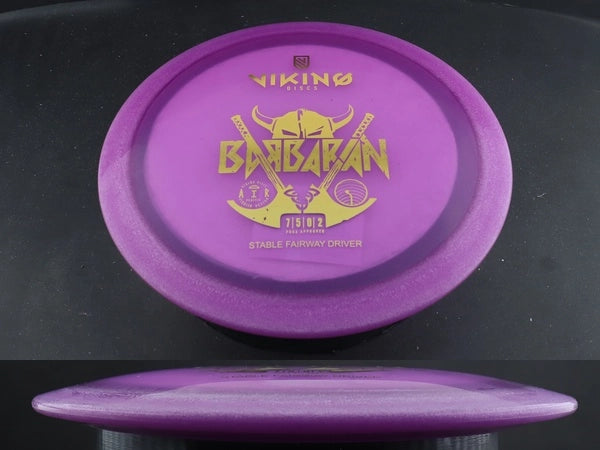 The Viking Discs Barbarian is a dependable fairway driver that holds a straight line before finishing with a controlled fade. In Viking Air plastic, this disc is made lighter through the inclusion of microbubbles in the rim, allowing players with lower arm speeds to get more distance and carry. It keeps the same flight shape as heavier versions while being easier to launch.
