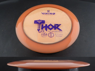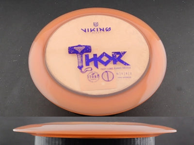 The Viking Thunder God Thor is a very fast distance driver with an ultra-wide rim. This is a driver that you can trust to fade out at the end of the flight, even if released at an anhyzer angle. Advanced players looking for maximum distance will want to try throwing the Thunder God Thor.
