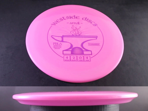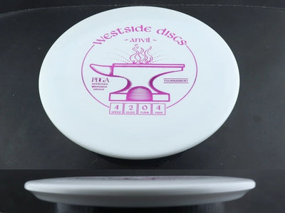 The Westside Anvil in Tournament plastic brings this notoriously overstable midrange/approach disc into Westside’s premium, grippy blend known for its softer feel and excellent control. Tournament plastic offers enhanced grip compared to VIP while maintaining high durability, giving the Anvil a touch more flex and a slightly smoother release without sacrificing its trademark beefy stability. This run is ideal for players who want a dependable wind-fighter with a premium feel in the hand.
