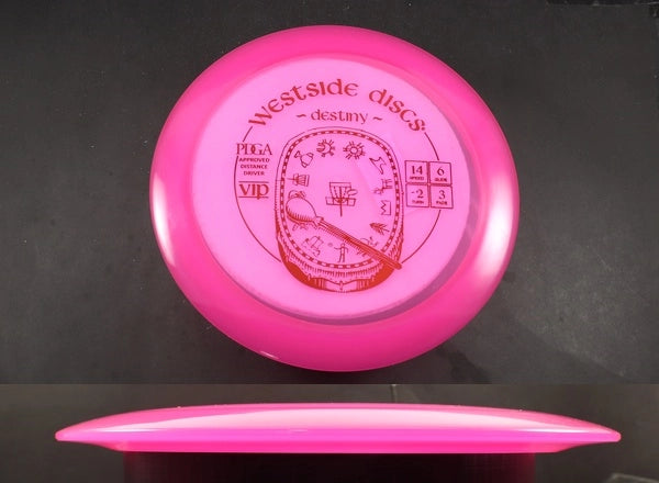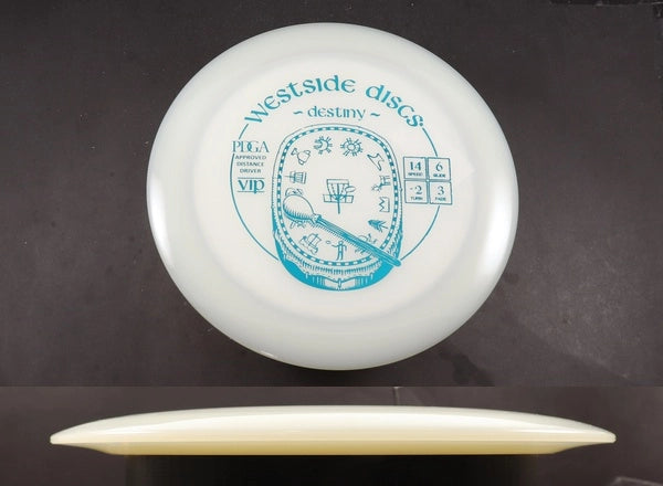 The Westside Destiny in VIP plastic is a high-speed, high-glide distance driver built for players who want effortless distance and full-flight turnovers. With its wide rim and understable flight profile, the Destiny is designed to maximize carry for players with moderate arm speeds while still offering huge potential for experienced throwers who can unlock its long, drifting S-curves. VIP plastic provides Westside’s most durable, translucent feel—offering dependable grip and long-lasting stability.