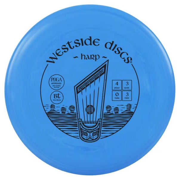 The Westside Harp in BT Medium plastic delivers one of disc golf’s most trusted overstable approach putters in a grippy, balanced baseline blend. BT Medium offers a firm-but-flexible feel—stiff enough for confident releases, yet soft enough to grab chains and stick the landing. This run provides excellent touch in all weather conditions, making it a favorite for players who rely on precision and control inside 250 feet.