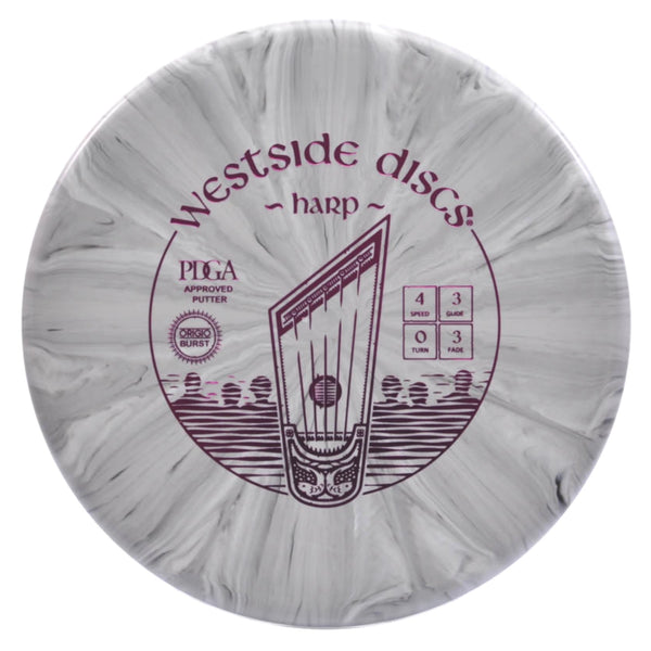 The Westside Harp in Origio Burst brings one of the game’s most trusted overstable approach putters into a highly grippy baseline plastic with eye-catching burst patterns. Origio Burst offers exceptional hand feel—soft, tacky, and confidence-boosting—making it ideal for players who prioritize touch and control on short-range backhands and forehands. This version beats in faster than premium plastics, opening up slightly straighter lines over time while still maintaining the Harp’s signature dependable fade.