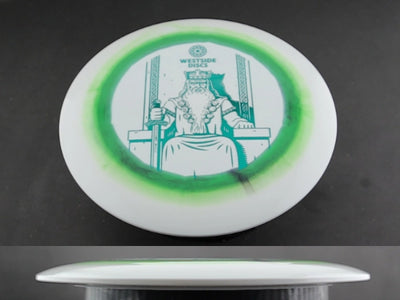 The Westside King in Tournament Ring plastic delivers the same explosive distance potential the mold is known for, now in a grippy, premium blend featuring Westside’s eye-catching Ring pattern. Tournament Ring plastic pairs the durability of Tournament with an enhanced tacky feel, giving throwers excellent control on power drives while maintaining long-term stability and consistent performance.
