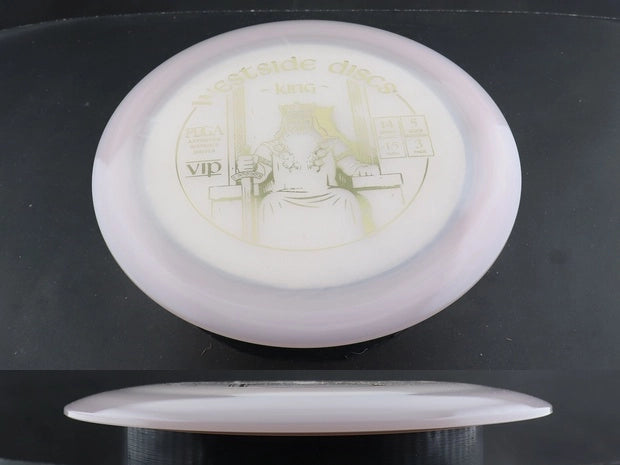 The Westside King in VIP plastic brings this high-speed distance driver into Westside’s most durable, translucent premium blend. VIP plastic offers a firm, long-lasting feel with a smooth release, allowing the King’s big-distance flight to shine while holding its stability over many rounds. With its wide rim and fast profile, the King is designed to generate serious distance potential for players who can get it up to speed.