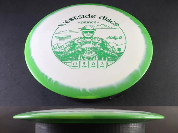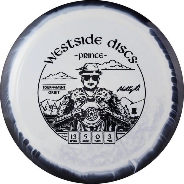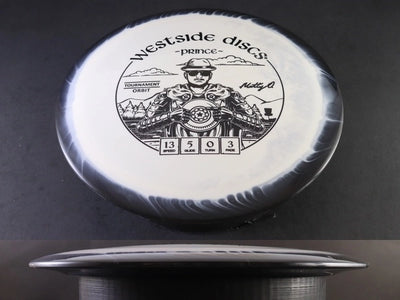 The Westside Prince in Tournament Orbit plastic brings this fast, glidey distance driver into a premium grip-focused blend enhanced with Orbit’s signature two-tone rim visuals. Tournament Orbit plastic offers the same tacky, confidence-boosting feel as standard Tournament but with added stiffness and standout aesthetics. This version combines easy shot-shaping distance with a refined, durable feel that performs consistently across conditions.