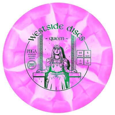 The Westside Queen in Origio Burst plastic offers this easy-to-throw distance driver in Westside’s most grippy and affordable baseline blend. Origio Burst provides excellent tactile feel—especially for newer players—while the burst patterns add vibrant, unique visual flair. Though it will season more quickly than premium plastics, that wear helps the Queen become even more understable and workable over time.