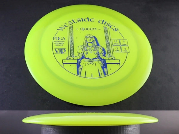 In flight, the VIP Queen delivers easy turn with a forward-moving fade that makes it ideal for shaping long, hyzer-flip distance shots. Thrown with power, it flips up smoothly and drifts on a controlled turnover before gliding back gently at the end. Lower-power arms will find it easy to get full flights out of the Queen, while advanced players can unlock long turnovers, tailwind bombs, and controlled distance rollers. Its glide and controllability make it one of Westside’s most intuitive long-range options.