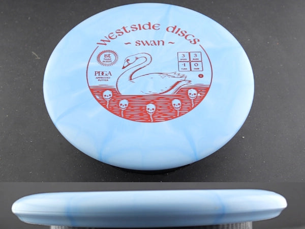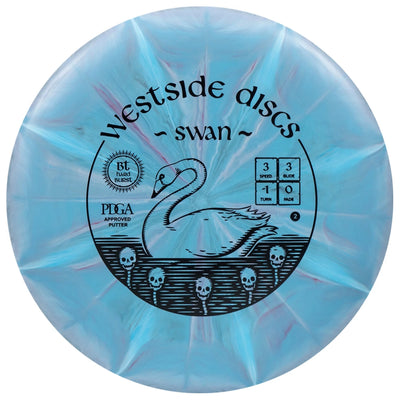 The Westside Swan in BT Hard Burst plastic brings this glidey, understable putter into a firmer baseline blend that offers a crisp release and excellent consistency. BT Hard Burst has a solid, confidence-building feel—ideal for players who prefer a stiffer putter for both putting and driving. The Burst pattern adds swirl-filled visual appeal without changing the dependable, straight-flying nature of the Swan.
