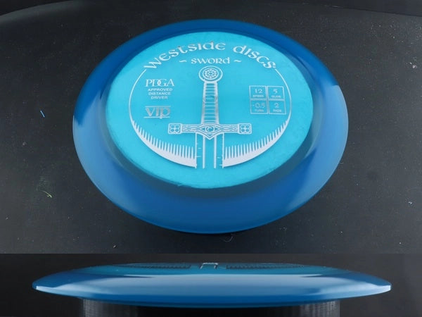 In VIP plastic, the Sword offers a neutral-to-stable flight that holds straight when thrown with power and works naturally into long, drifting turnovers or smooth hyzer-flip lines. It resists early turn but isn’t overly demanding, giving it excellent versatility for a wide range of arm speeds. Expect a dependable, moderate fade at the end—enough to stay predictable without pulling you off your intended line.