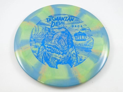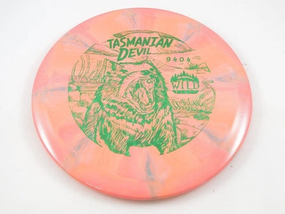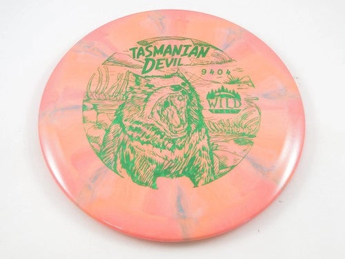 The Wild Discs Tasmanian Devil V2 in Lava Flare plastic is a powerful, overstable distance driver designed for control and confidence at high speeds. Built to fight wind and handle torque, this disc delivers a predictable flight with strong fade—ideal for power throwers and forehand specialists looking for reliability in any condition.