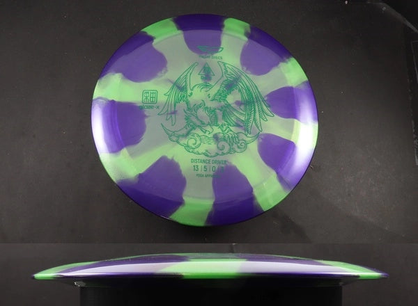 The Yikun Da’E is an ultra-fast, overstable driver. This is an excellent disc for advanced players looking for max distance, and works very well for forehand drives. The Da’E has a very wide rim and is the best wind fighter in the Yikun line.