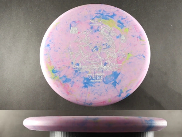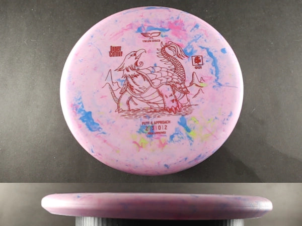 The Gui is a beadless overstable putter with a flat top, deep rim, and unique slip-resistant grip plates on the bottom flight plate. This is a very comfortable putt & approach disc that is very similar to the Discmania Tiger Warrior.